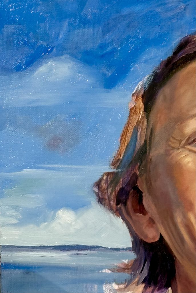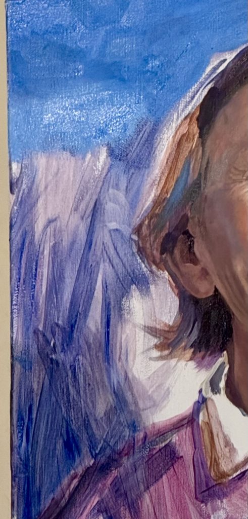 Water-based oils are a relatively recent development. In the past oils were made with and cleaned with turpentine and regular oils. Some artists had difficulty with the fumes from the solvents and thus the innovation of water-based oils was welcomed. Caroline mentioned that there were three water-based oil brands that she uses, although this is not an extensive list. The Lucas Berlin was a suitable one, the Aqua Duo is expensive but very good, Cobra is suitable as well but she stated that the Artisans were inexpensive and lacked a lot of pigment so she did not recommend them.